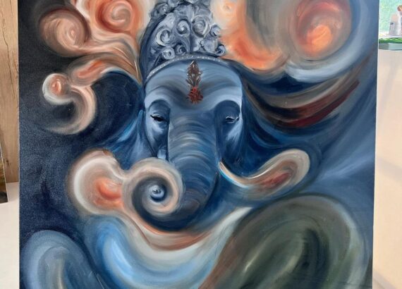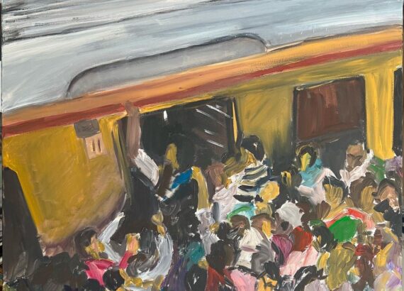 The last “darshan” of Sachin Tendulkar is a poignant and evocative oil painting that captures the essence of his final international cricket match. Juxtaposed between Impressionism and Expressionism, the painting depicts Tendulkar as a monk in his flow, unperturbed by the surrounding crowd, which is chanting harmoniously. The steps leading up to the pitch represent the various hurdles that Tendulkar had to overcome to reach the pedestal where he is worshipped as the God of cricket. And the tricoloured bat that he embraces so graciously symbolizes his responsibility as a role model for millions of Indians.